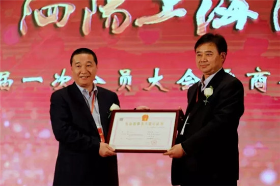 泗阳县民政局党组书记、局长庄召兵同志为商会颁发证书,这标志着商会此时正式成立。