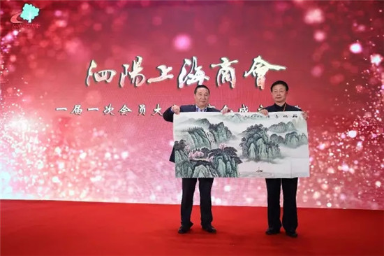 来自上海市杨浦区政协书画院(吴良安同志)为泗阳上海商会成立赠字。上海市广东商会执行会长(黄俊松同志)为泗阳上海商会赠画。